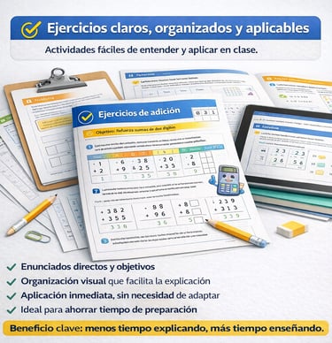 No más horas buscando, creando o adaptando ejercicios. El material ya está organizado y listo para usar.